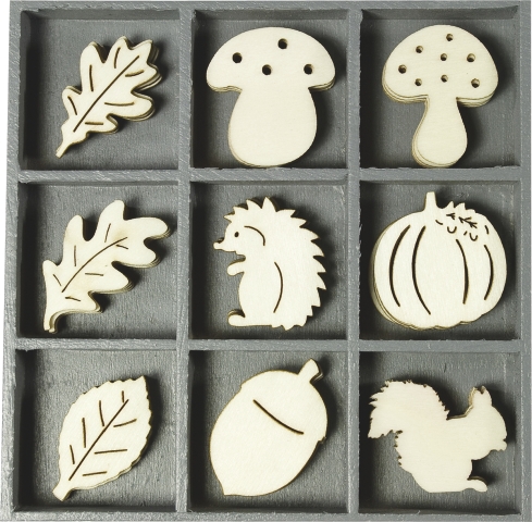 Produktinformationen "Holzbox Ornament Igel, Pilz und Blatt"