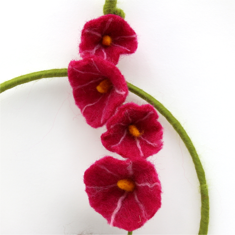 Die fertige Stockrose passt wunderbar über dem Jahreszeitentisch im Sommer, oder als Blickfang im Kinderzimmer, am Fenster...