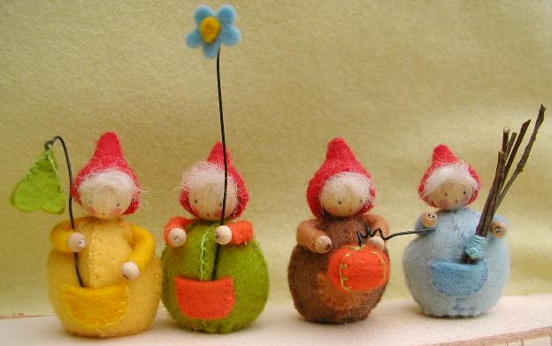 Vier Kugelbäuchlein für den Jahreszeitentisch.