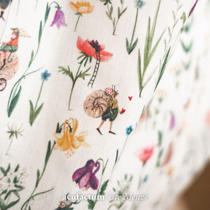Wer kreucht und fleucht denn da zwischen den wunderschönen Wiesenblumen? Es sind die Schneckenpostboten auf der wunderschönen Sommerwiese unterwegs um geschriebene Grüße zu überbringen. Dieser wunderschöne Baumwollstoff besticht durch seine Zartheit und Eleganz. Die filigran gedruckten Motive laden zu romantischen Nähprojekten ein. Sie regen unsere Kreativität und Fantasie besonders an. Lassen Sie sich inspirieren zu vielen Heimaccessoires oder Geschenkideen, gezaubert mit Nadel und Faden.