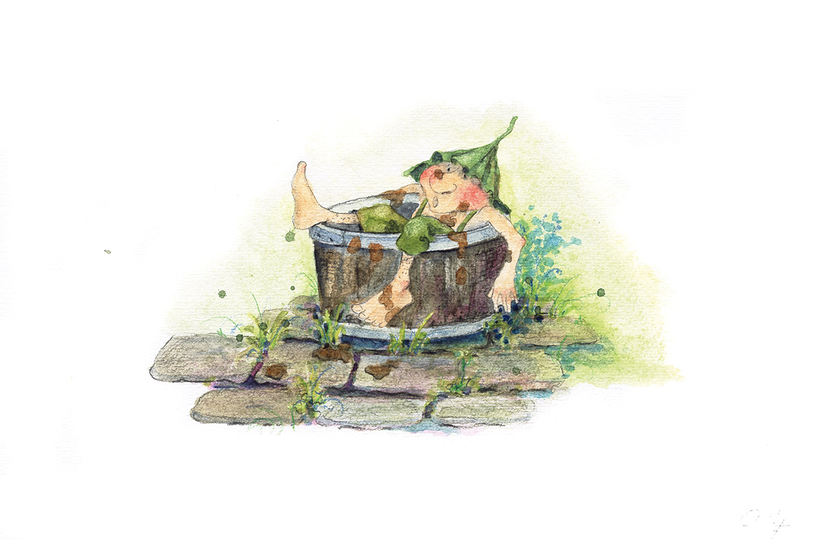 Er veranstaltet ein Schneckenrennen, legt sich bisweilen mit Kater Munz an und verliebt sich in die Elfe Gisela.