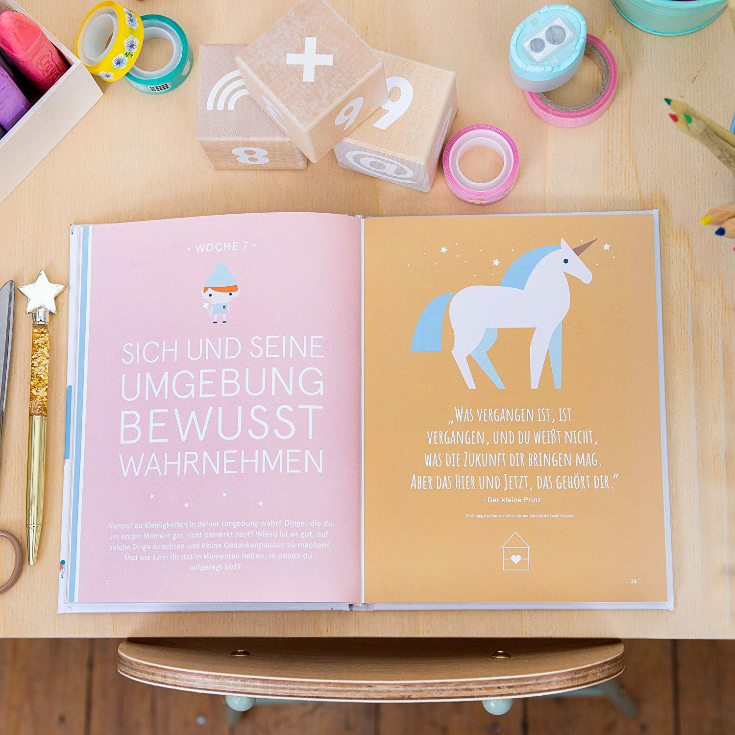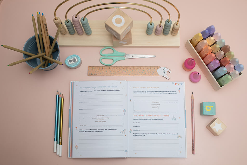 Das schön gestaltetet Positivitäts- und Glückstagebuch, möchte dich und dein Kind über 21 Wochen durch 7 wissenschaftlich belegte, glücksrelevante Themen begleitet, eure Beziehung stärkt und ganz viel Freude macht.