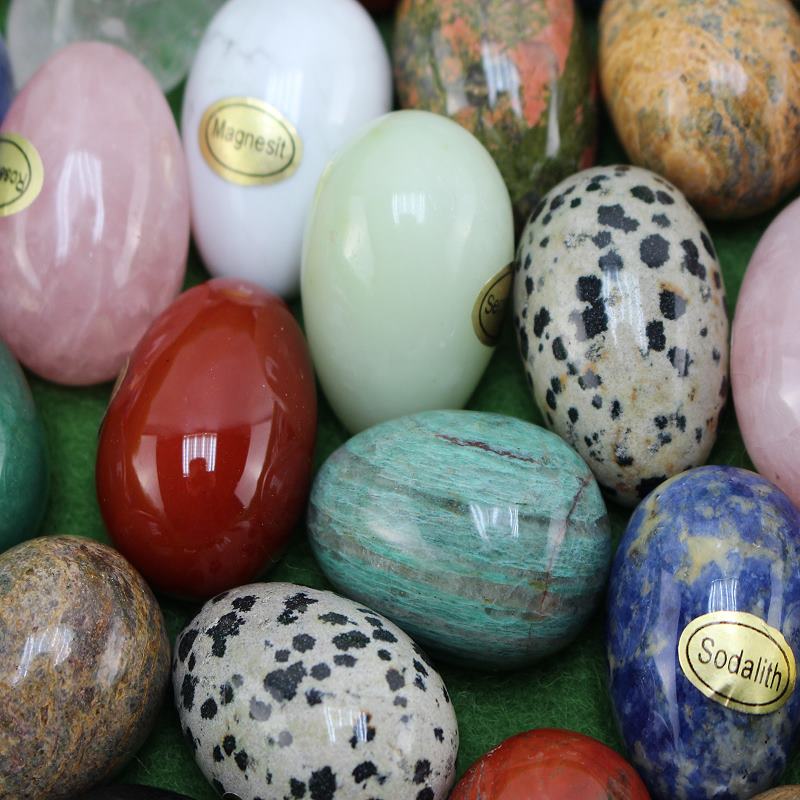 Die schönen Edelsteineier sind ca. 3,5 x 3 cm groß.