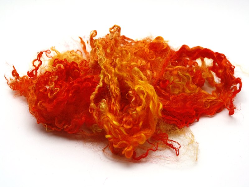 Die Locken haben eine brillante Farbintensität, sie sind sehr schön gelockt und ideal geeignet für Engel, Feen, Zwerge, Puppenhaar, zum Einfilzen in Schals, Taschen, Mützen….