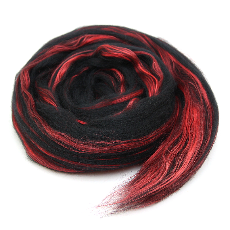 Produktinformationen "Feiner Merinokammzug mit Seide Schwarz küsst Rot"