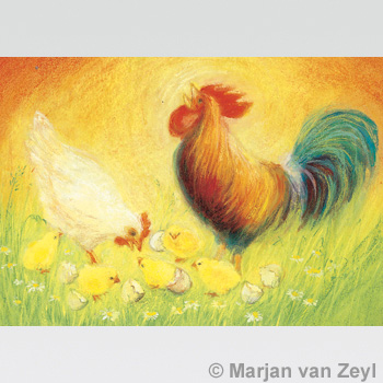 Produktinformationen "Kunstkarte Hahn mit Huh und Kücken"