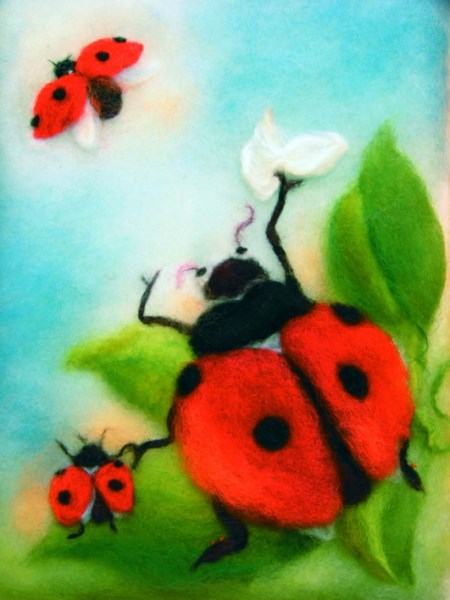 Kunstkarte * Wollbild Marienkäfer