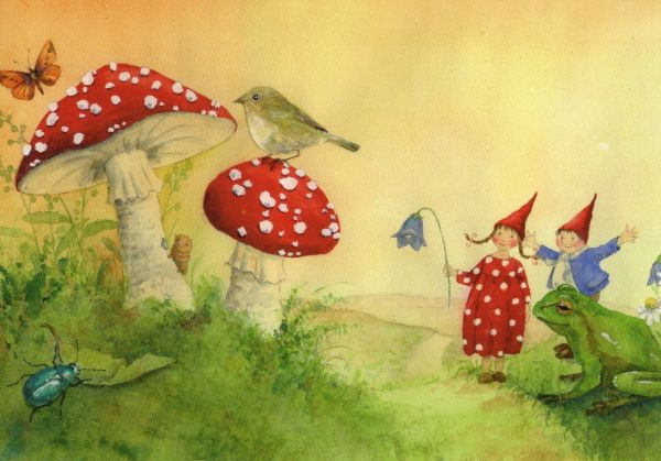 Postkarte Pippa und Pelle mit Pilzen