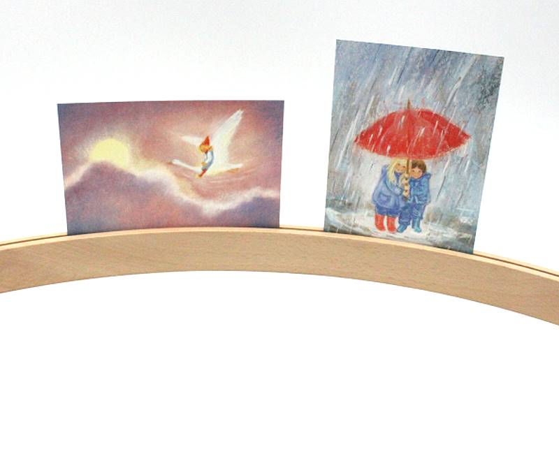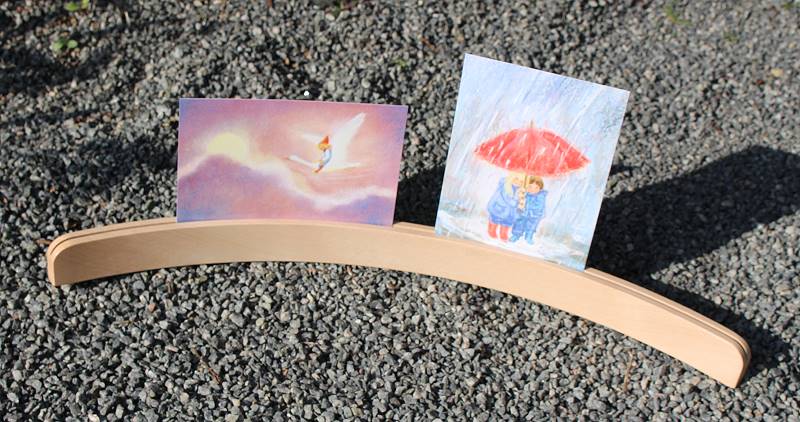 Der große Postkartenständer kann mehrere Kunstkarten gleichzeitig wie eine kleine Geschichte präsentieren.