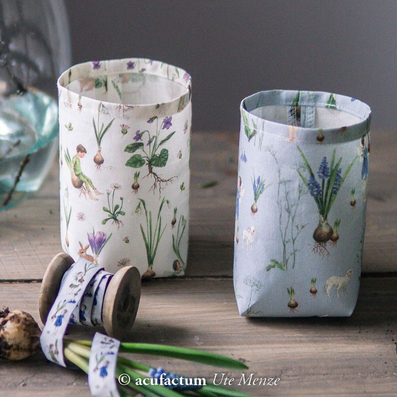 Zarte Frühlingselfen und Frühlingsblumen tummeln sich auf diesem bezaubernden Baumwollstoff.