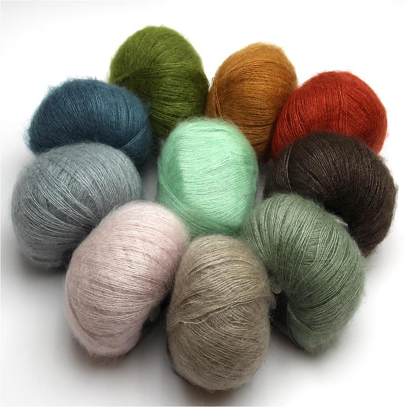 Die feine Mohair Wolle stammt von der Angoraziege und gilt als leichteste Naturfaser der Welt. Der Feinheitsgrad der Wolle richtet sich nach dem Alter des Tieres und wird dementsprechend gekennzeichnet. Super Kid Mohair ist die feinste Abstufung der in Mikron gemessenen Faser und steht für eine besonders hohe Qualität. Mohair Wolle zeichnet sich durch eine sehr gute Temperaturregulierung aus und ist zugleich feuchtigkeitsabsorbierend. Zudem weist die elastische Faser eine geringe Knitterneigung auf und besitzt einen feinen Glanz. Seide ist eine sehr feine Textilfaser aus dem Kokon der Seidenraupe. Sie ist von hoher Formbeständigkeit und wirkt temperaturausgleichend. Durch die gute Aufnahmefähigkeit für Farbstoffe eignet sich Seide besonders für Garne mit intensiver Farbgebung.