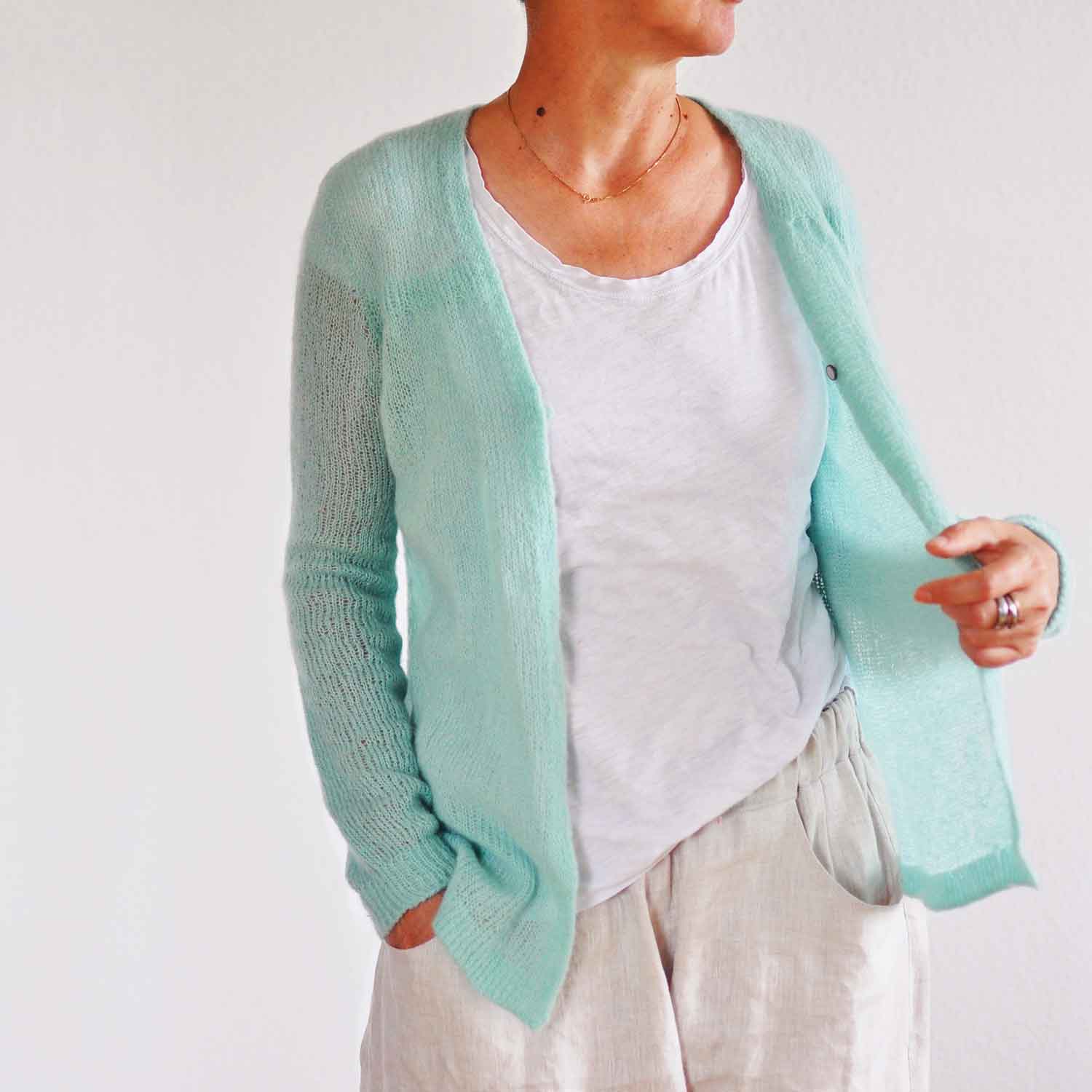Dabei ist es ein sehr vielseitiges, wandelbares Garn. Du kannst es für sich allein verstricken, und je nach Nadelstärke ein dichtes, warmes oder ein luftig-leichtes Maschenbild erreichen. Oder Du kombinierst Manada als Beilauffaden zu einem unserer anderen Garne.