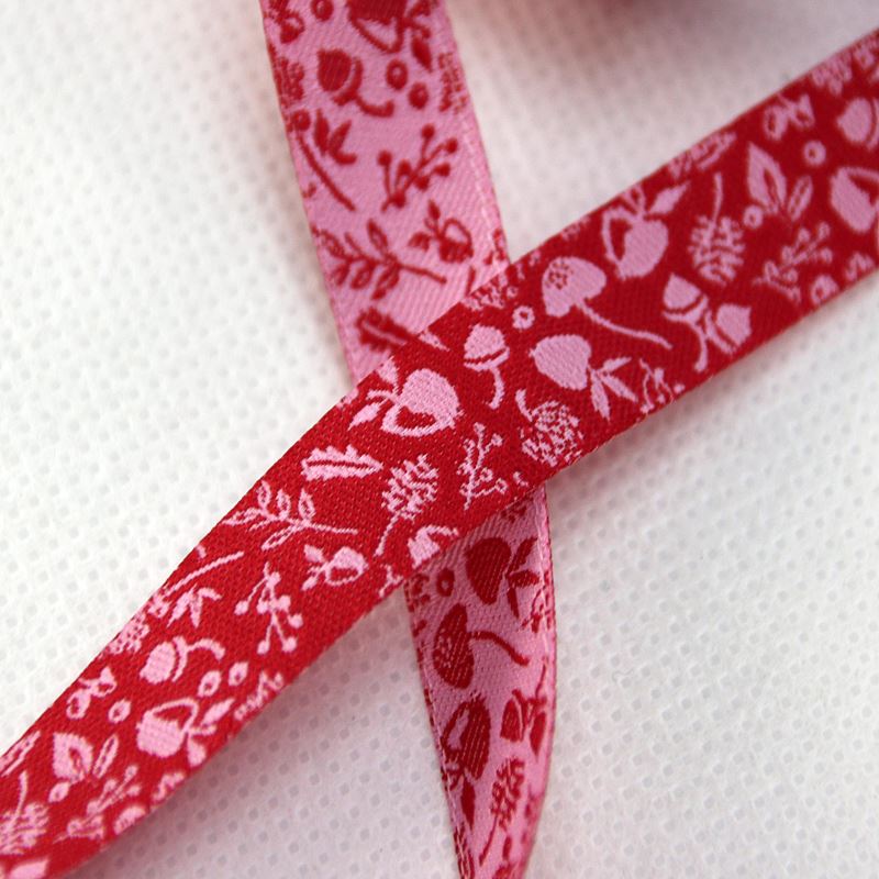 Kleine Pilze, FahnBlätter, Waldfrüchte sind auf diesem Webband zu sehen.
