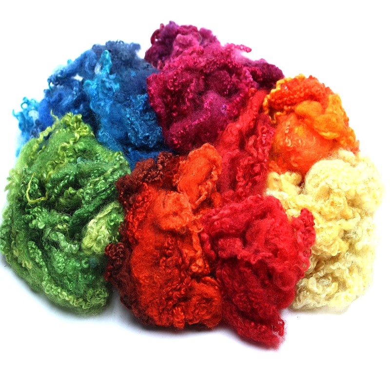 Die Locken haben eine brillante Farbintensität, sie sind sehr schön gelockt und ideal geeignet für Engel, Feen, Zwerge, Puppenhaar, zum Einfilzen in Schals, Taschen, Mützen….