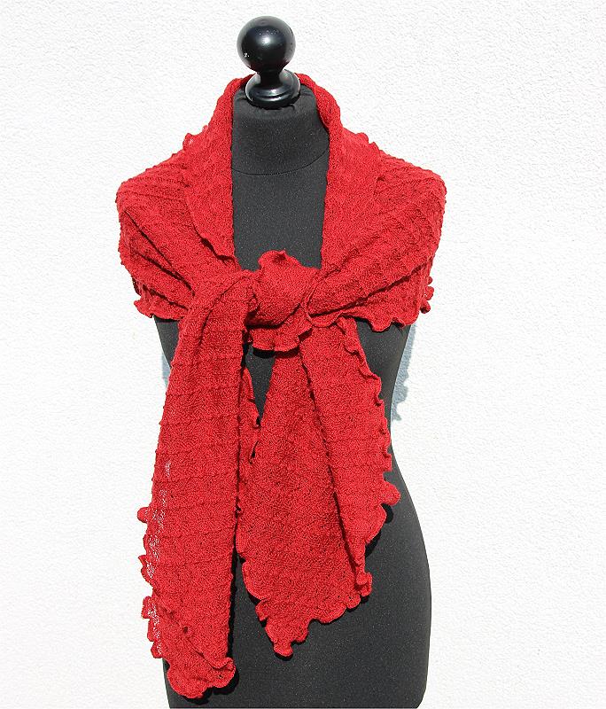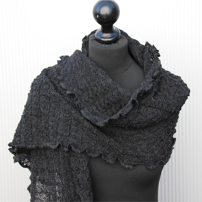 Das edle Lochmuster und die wellige Kante verleihen dem Schal sein besonders schönes Aussehen.